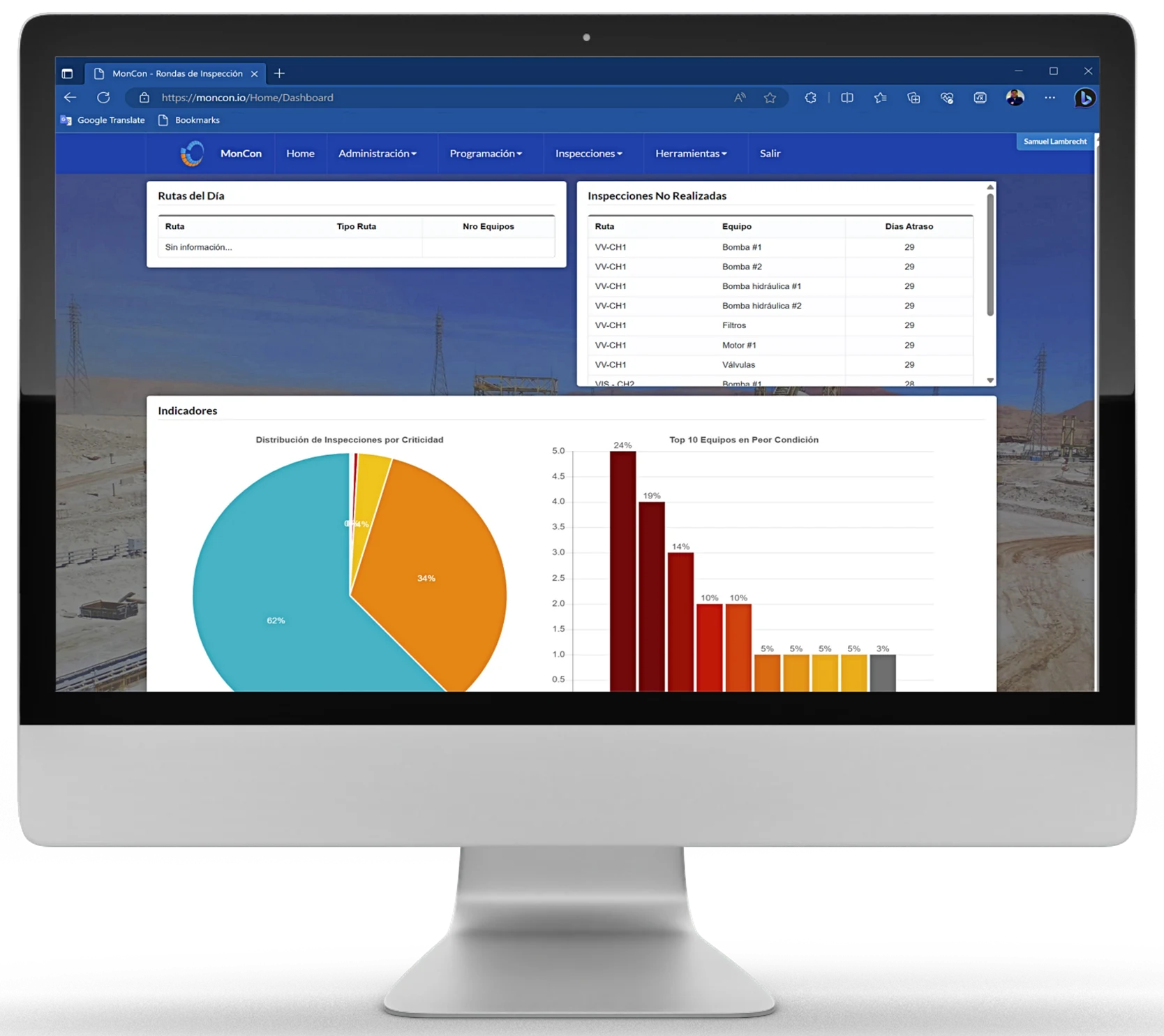 MONCON es una herramienta SaaS diseñada para optimizar las rondas de inspección, especialmente dirigida a ingenieros de confiabilidad y analistas de monitoreo de condiciones. Esta solución aborda varios desafíos que enfrentan las industrias intensivas en activos, como la falta de visibilidad del estado de los activos, fallos inesperados, tiempos de inactividad no planificados, procesos de monitoreo no estandarizados, y decisiones de mantenimiento basadas en datos imprecisos.